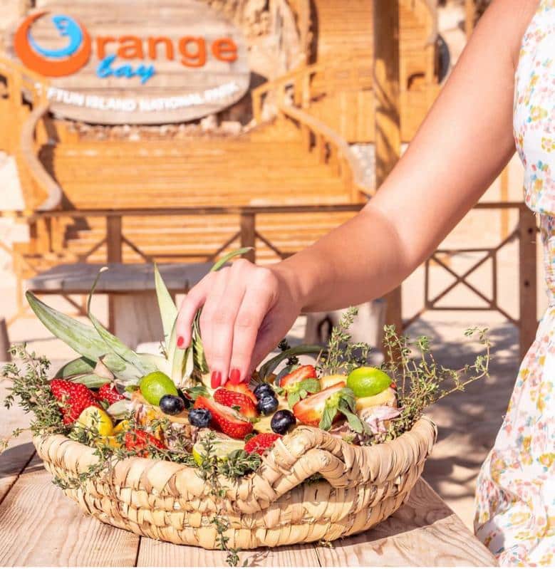 Once you arrive at Orange Bay, you’ll be mesmerized by the crystal-clear turquoise waters, white sandy beaches, and unspoiled coral reefs that surround the island. Spend 2 hours on the island, relaxing on the beach, swimming in the warm waters, or taking stunning photos at the specially designed sitting areas in the shallow waters. The island’s vibrant marine life and peaceful ambiance make it the ideal setting to unwind and enjoy nature.
